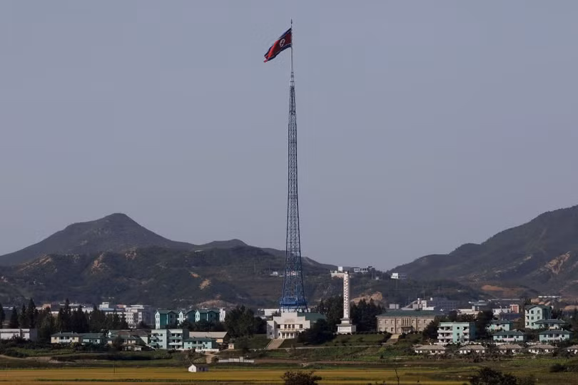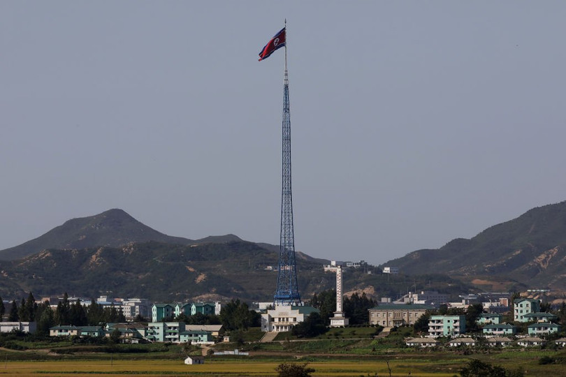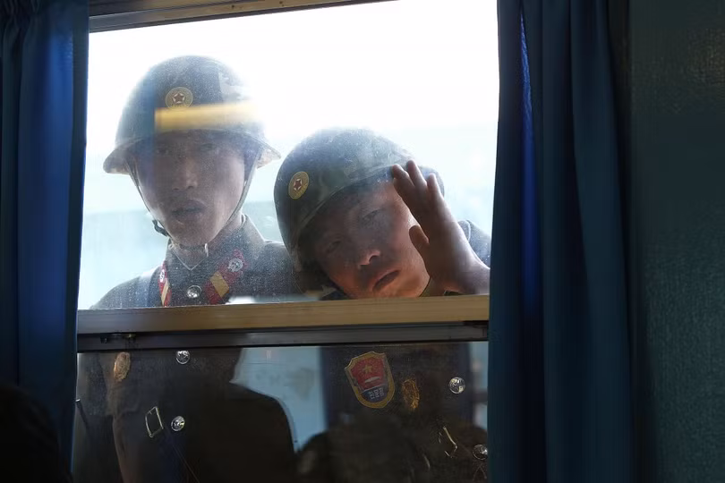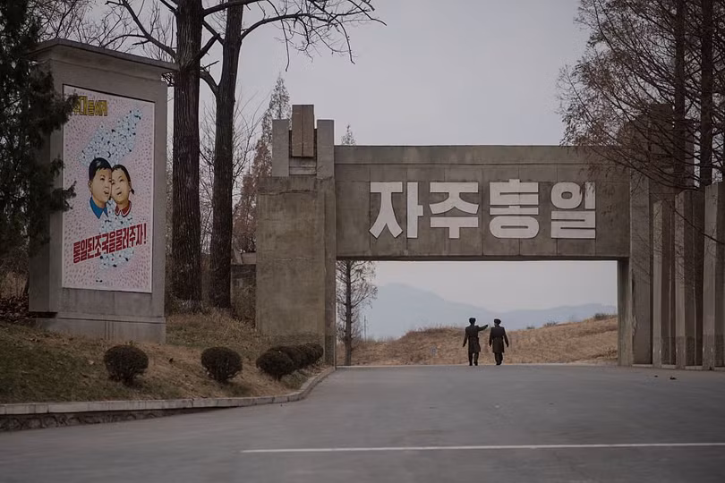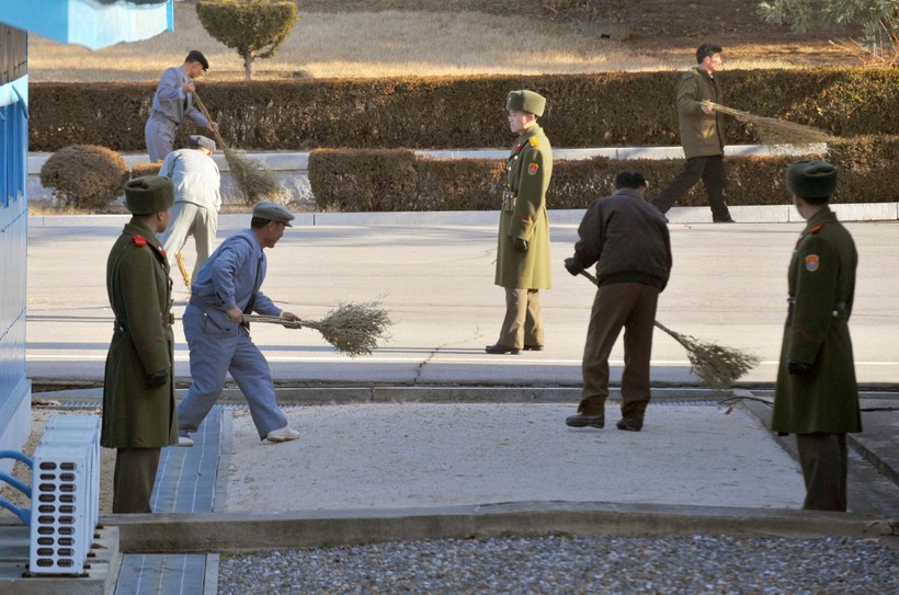 Bên ngoài, những nhân viên Triều Tiên đang quét khu vực thuộc đất nước của họ.