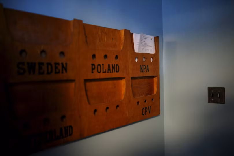 Trong phòng hội nghị có hòm thư dành cho KPA: quân đội nhân dân Triều Tiên.