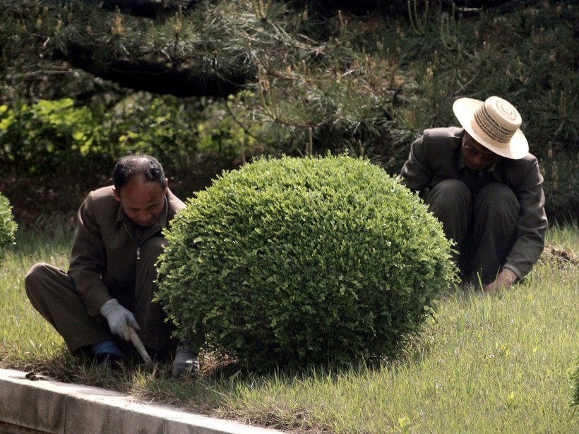 Họ cũng chăm sóc thảm cỏ bên phần của Triều Tiên.