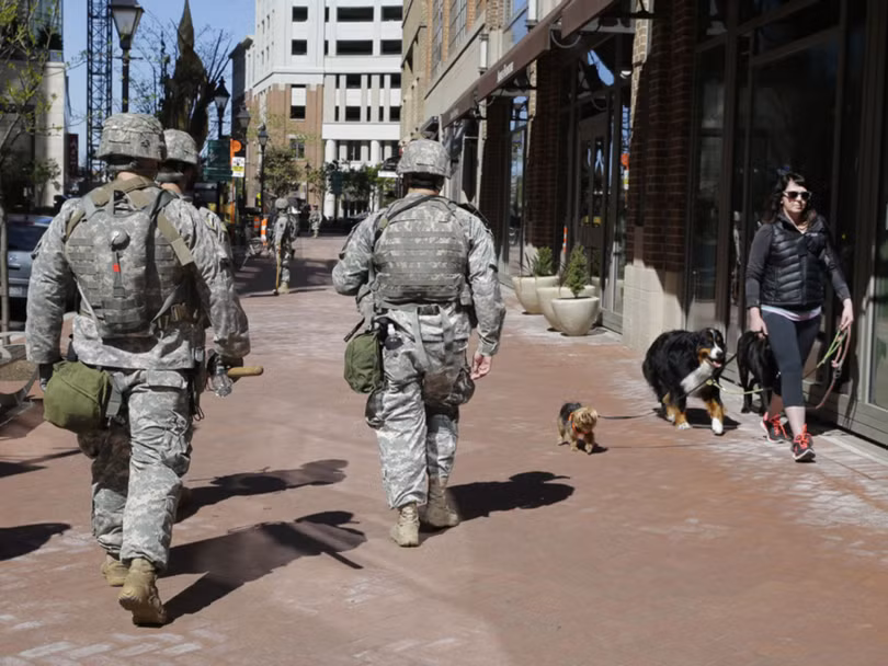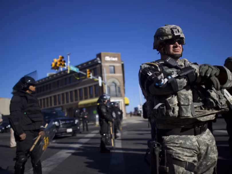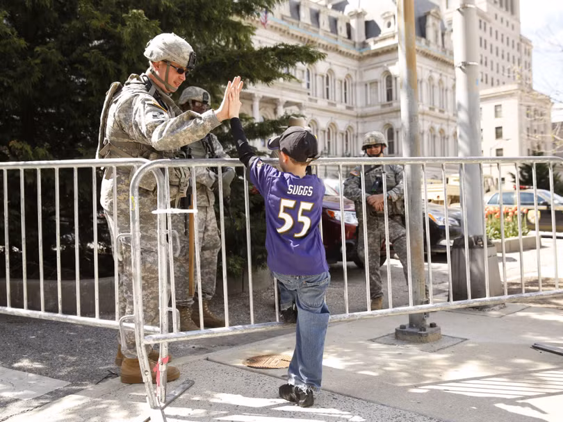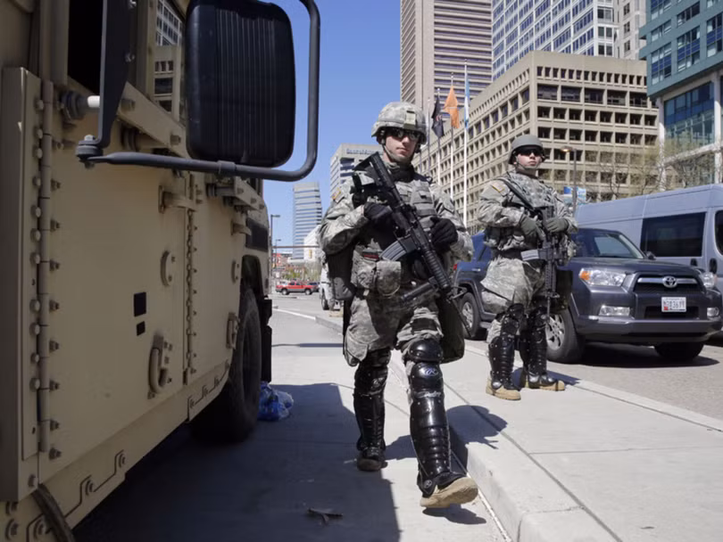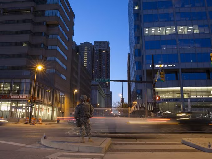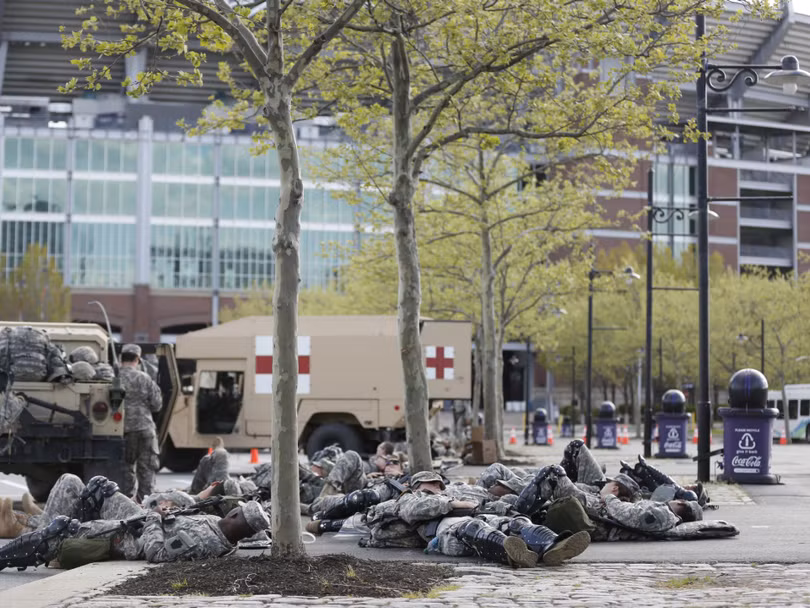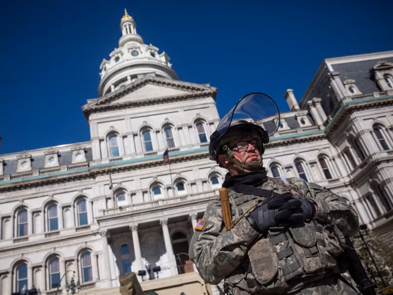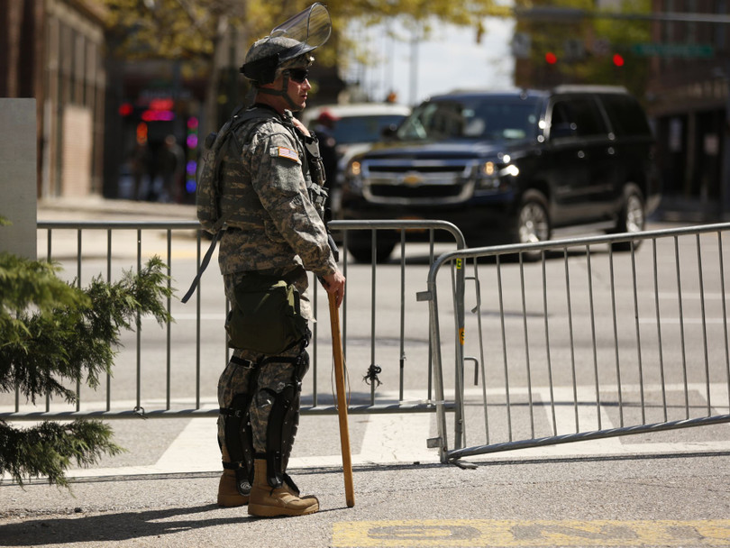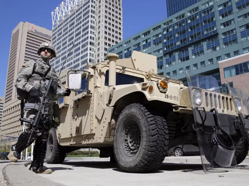Lực lượng vệ binh quốc gia được đưa đến Baltimore hỗ trợ cảnh sát bảo đảm an ninh, chống bạo loạn trong các cuộc mít tinh, biểu tình phản đối chống phân biệt chủng tộc.