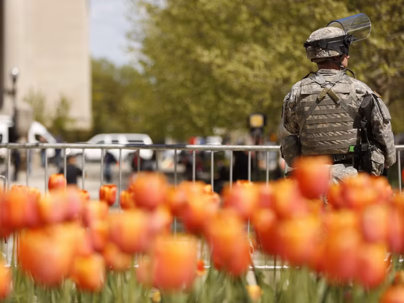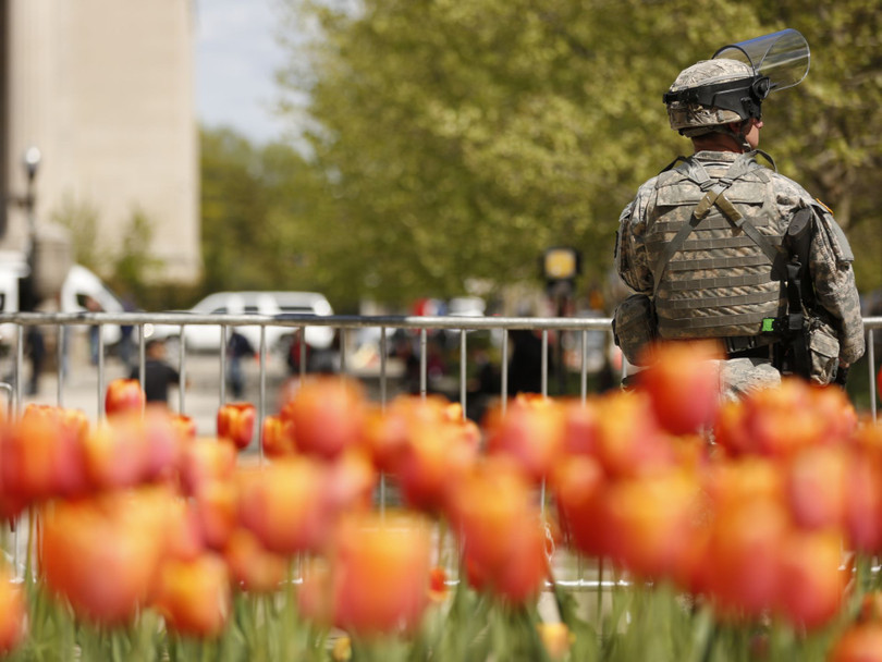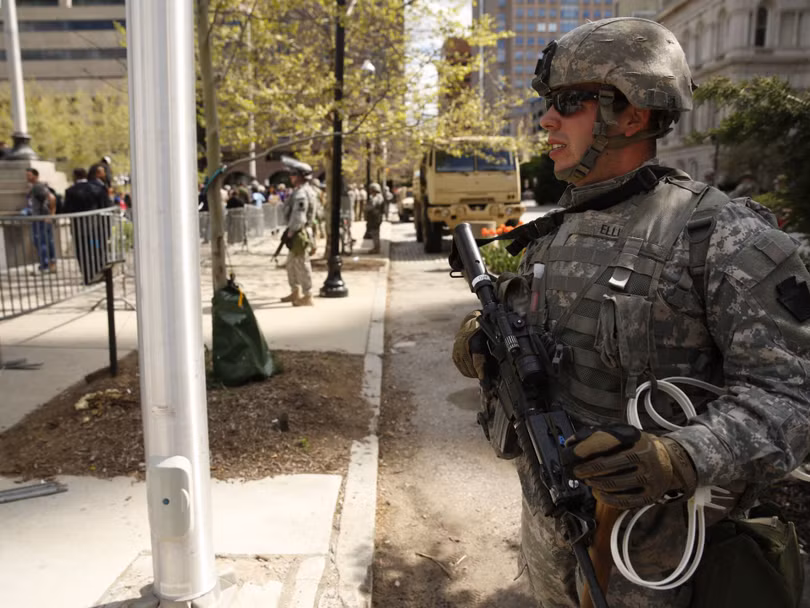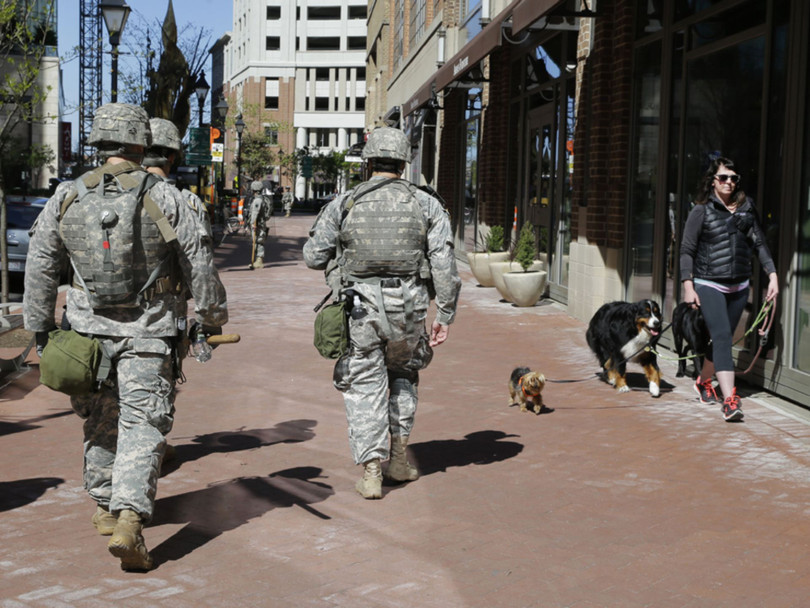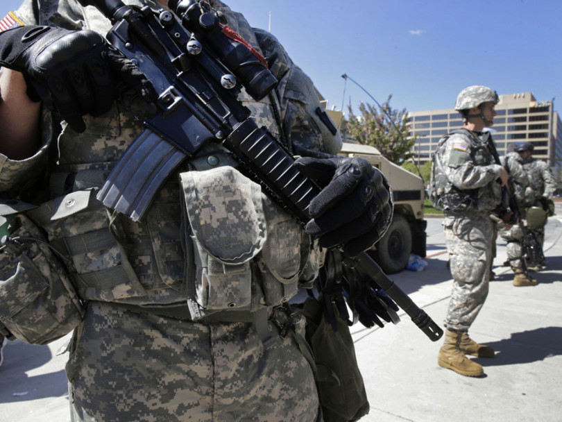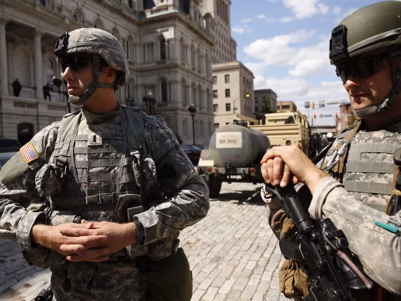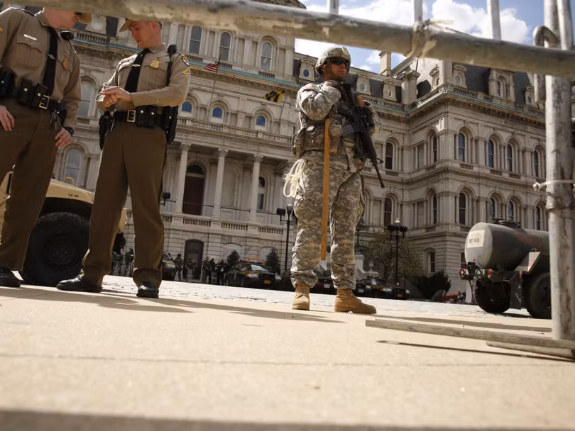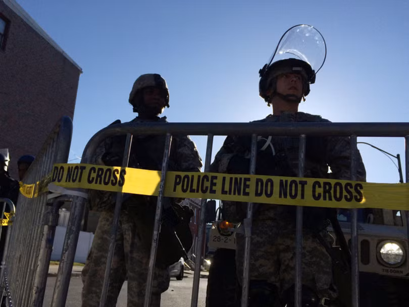 Lực lượng vệ binh quốc gia được đưa đến Baltimore hỗ trợ cảnh sát bảo đảm an ninh, chống bạo loạn trong các cuộc mít tinh, biểu tình phản đối chống phân biệt chủng tộc.