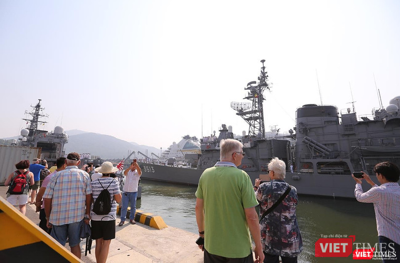 Sự xuất hiện đội tàu quân sự thuộc Lực lượng bảo vệ bờ biển Nhật Bản tại Cảng Tiên Sa đã thu hút sự quan tâm của du khách trong và ngoài nước