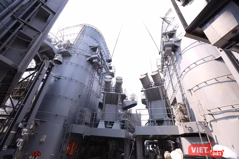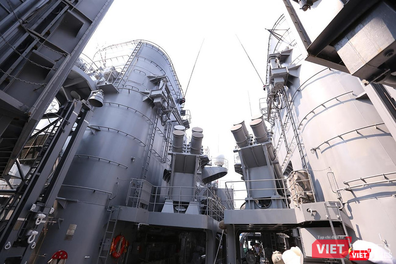 Phía sau đuôi tàu là sân đỗ trực thăng
