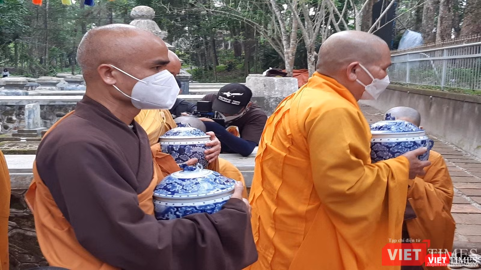 Xá lợi của Thiền sư Thích Nhất Hạnh được đựng trong 6 hũ sành và cung thỉnh về Tổ đình Từ Hiếu (TP Huế).