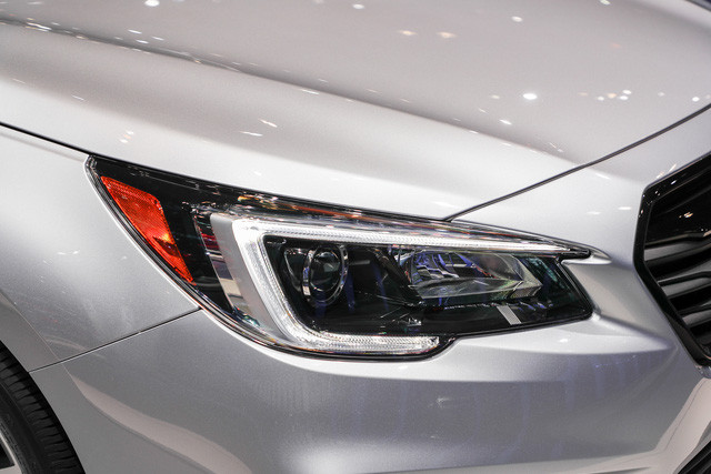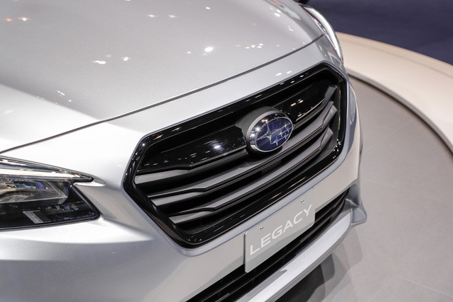 Điểm mới đập vào mắt đầu tiên của Subaru Legacy 2018 chính là phần đầu xe với lưới tản nhiệt rộng hơn theo phong cách đôi cánh và thanh ngang mạ crôm khác biệt.