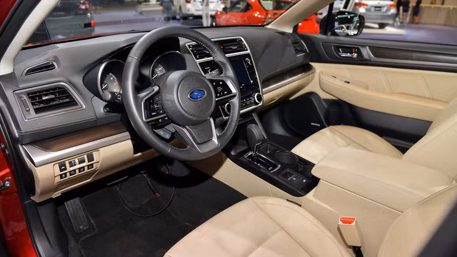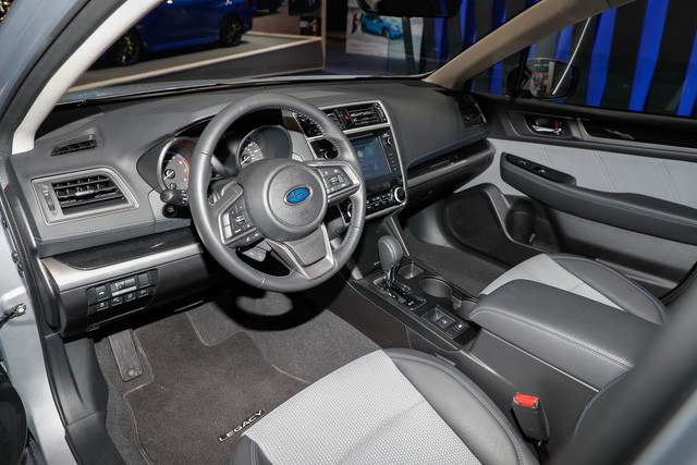 Bước vào bên trong Subaru Legacy 2018, người lái sẽ thấy những chất liệu nội thất cao cấp hơn, cụm điều khiển trung tâm tái thiết kế và vô lăng thể thao hơn. Bảng táp-lô, ghế và mặt cửa trên bản Premium của Subaru Legacy 2018 được khâu chỉ tạo cảm giác sang trọng. Thêm vào đó là bộ phụ kiện màu đen bóng và những nút điều khiển màu bạc.