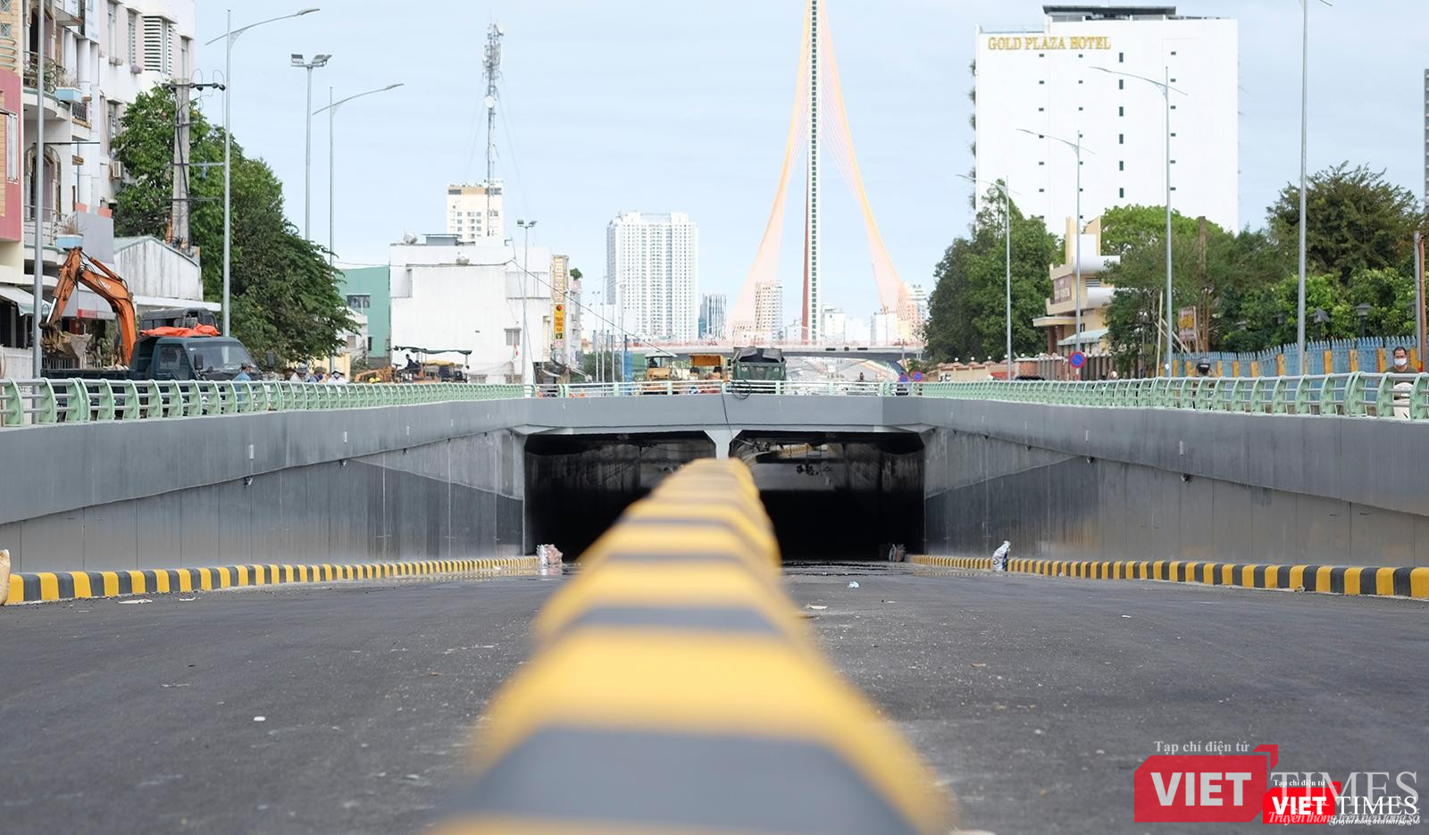 | Hầm chui phía Tây cầu Trần Thị Lý nhìn từ đường Duy Tân về phía đông |
