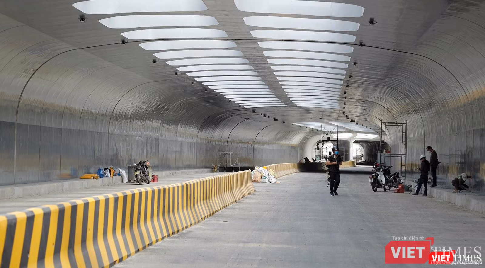 VietTimes xin gửi đến bạn đọc một số hình ảnh về hầm chui này trong giai đoạn hoàn thiện, đẩy nhanh tiến độ để kịp đưa vào sử dụng vào ngày 29/3 tới: