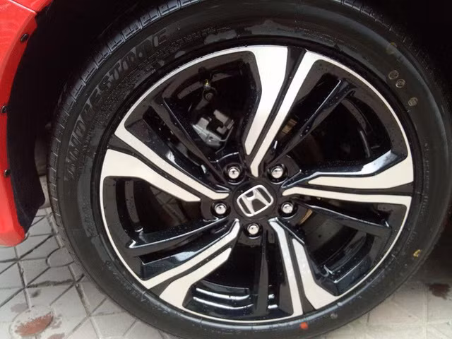 Bên sườn của Honda Civic 2016 là bộ vành hợp kim đa chấu sơn 2 màu với đường kính 17 inch. Bộ la-zăng của Honda Civic thế hệ mới được thiết kế khá lạ mắt.