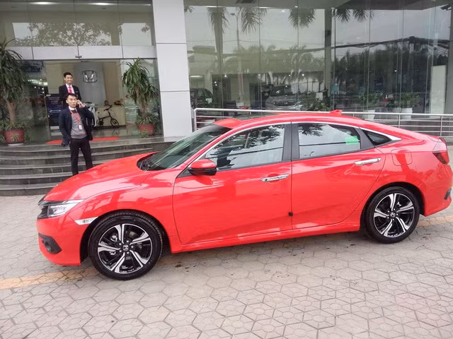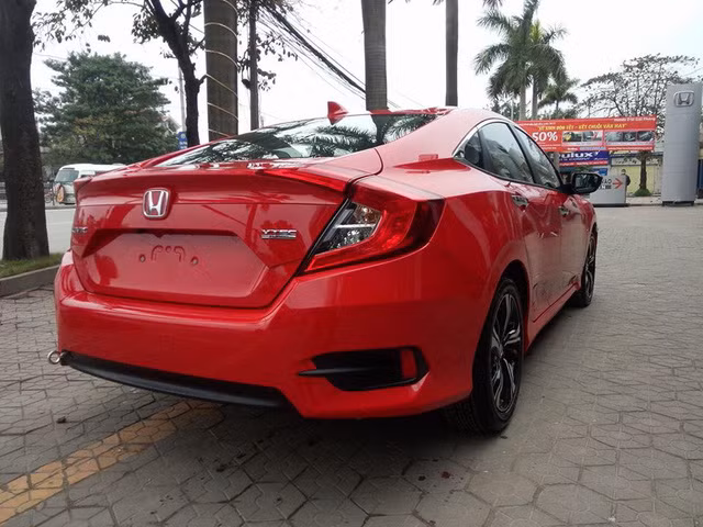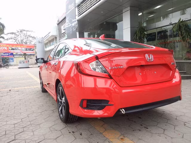 Chiếc Honda Civic 2016 trong ảnh được chụp tại một đại lý ở khu vực Hà Nội. Xe được sơn ngoại thất màu đỏ rực bắt mắt và nổi bật.