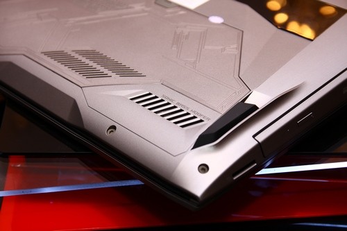 Dẫu thế, Asus ROG G752 trông khá đẹp với thiết kế lớp vỏ màu xám phay xước đi kèm họa tiết là các dãy đèn LED đỏ. Thêm vào đó, phần cánh gió tản nhiệt của Asus ROG G752 cũng trông rất hầm hố, hệt như hệ thống ống xả của những chiếc phi thuyền trong game.