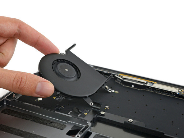 Gỡ quạt tản nhiệt, phiên bản MacBook Pro 13-inch chỉ có 1 quạt, trên phiên bản 15-inch sẽ là 2 chiếc.