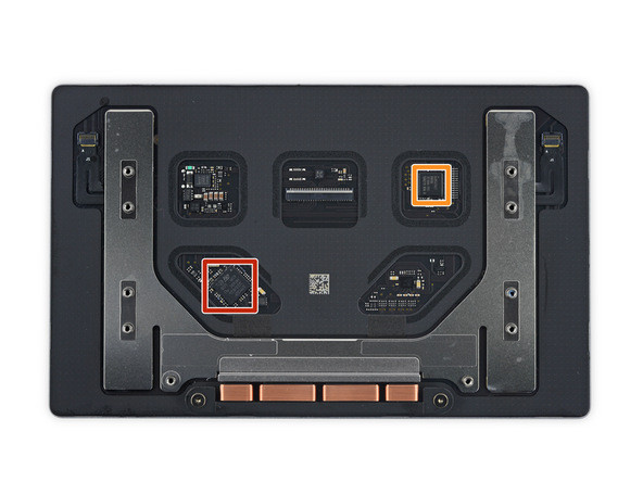 Đầu tiên là tháo bỏ phần touch pad. Năm nay Touch Pad có kích thước to gấp đôi mọi khi và tích hợp Taptic Enigine, tạo ra phản hồi khi bấm vào dù không có phím cứng.