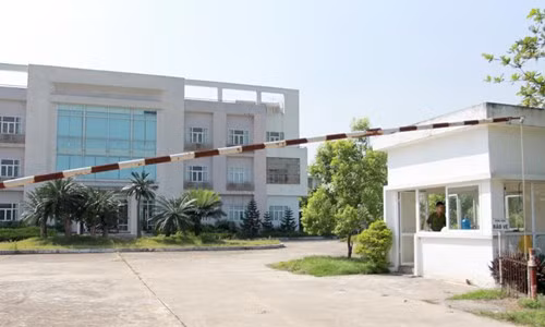 Cảnh hoang tàn trước khuôn viên nhà máy.
