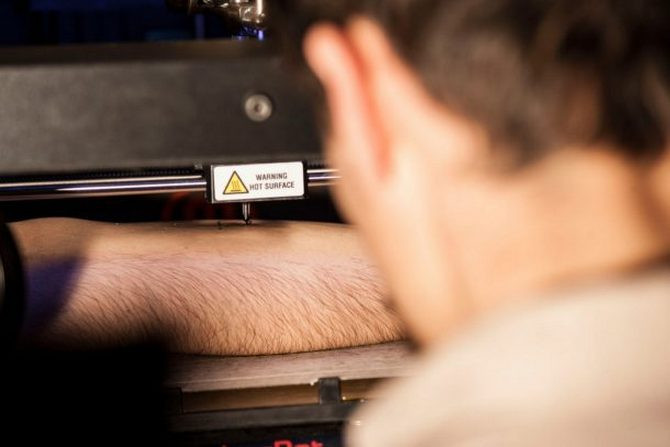 Cỗ máy có thể tạo nên các hình xăm vĩnh viễn cho mỗi người. Phần đầu máy in được trang bị cảm biến giúp đảm bảo kim xăm chỉ xuyên qua lớp da trên cùng và không gây đau. Ngay cả khi mực in tràn ra ngoài, sẽ chỉ có những vị trí được kim xăm tác động sẽ tạo thành hình.