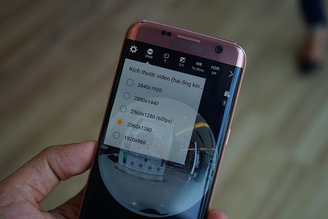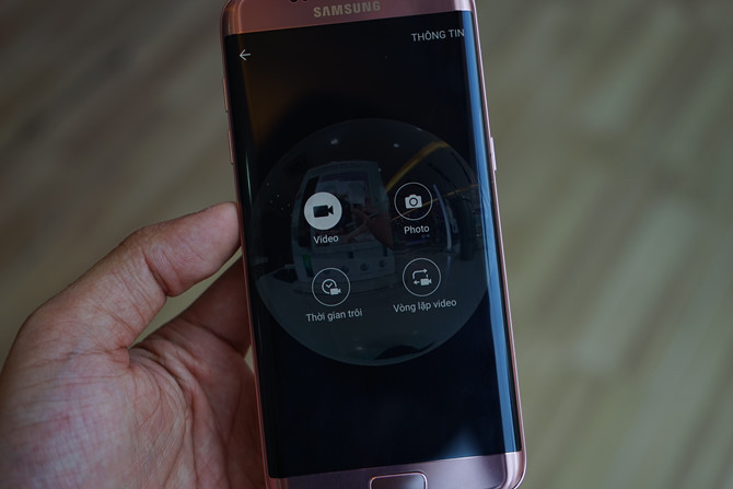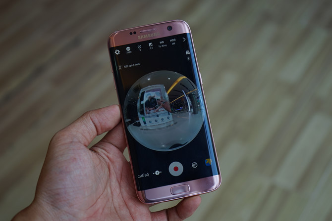 Giao diện điều khiển Gear 360 trên chiếc Galaxy S7 edge.