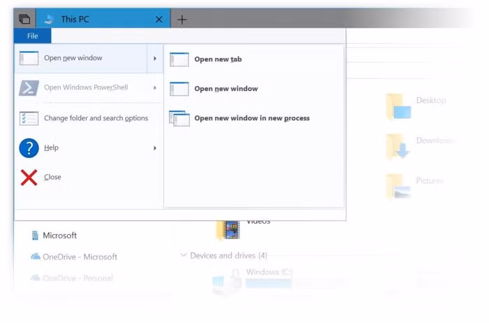 Cụ thể, người dùng File Explorer nay đã có thể tạo tab mới bằng cách nhấn tổ hợp phím CTRL + T tương tự như việc tạo tab trên các trình duyệt web. Tức là để duyệt tập tin, bạn chỉ cần hai thao tác: CTRL + N để mở một cửa sổ File Explorer mới, và sau đó là CTRL + T để mở tiếp một tab mới. Để đóng cửa sổ hay tab, bạn nhấn CTRL + W. Quá nhanh gọn!