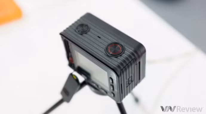 Phía trên máy bố trí phím nguồn và phím chụp/quay.