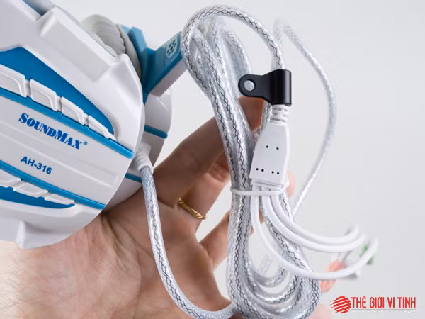 Là một sản phẩm thiết kế cho người dùng chơi game chủ yếu trên máy tính, nên Soundmax AH-316 cũng được nhà sản xuất kéo dài tối đa dây cáp tín hiệu âm thanh cho tai nghe. Với độ dài 2,3m, Soundmax AH-316 có thừa tiện dụng để người dùng kết nối tai nghe với các ngõ xuất âm thanh ở mặt sau thùng máy. Để đáp ứng nhu cầu đàm thoại qua môi trường Internet, AH-316 cũng được Soundmax tích hợp kèm micro ngay trên củ tai trái, trong khi đó, nút chức năng điều tiết âm lượng được bố trí ngay mặt sau củ tai và cũng khá vừa tầm tay.