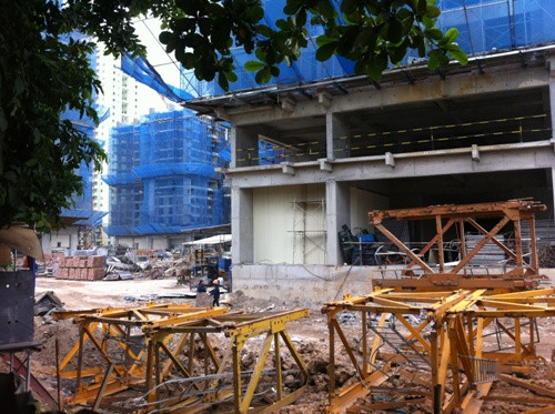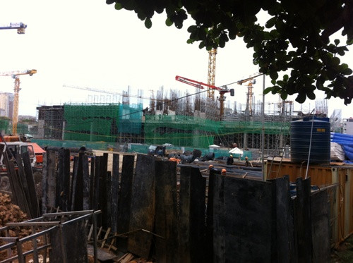 Trong khi đó một số tòa khác đã hoàn thiện xong móng và đang bắt đầu xây dựng phần thân