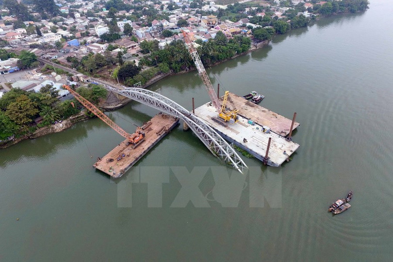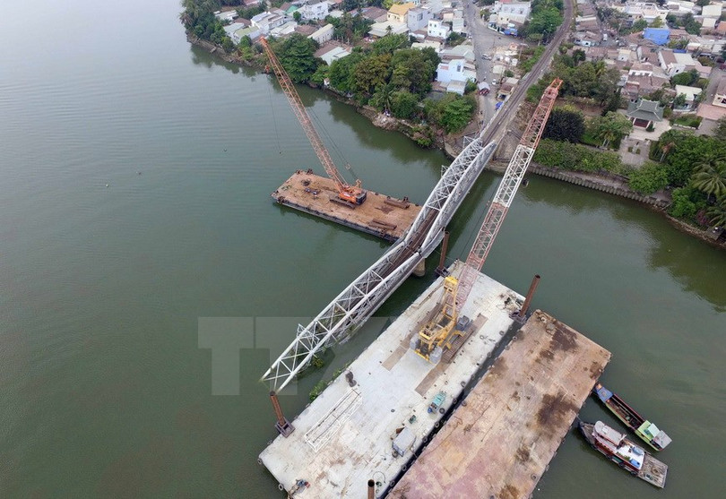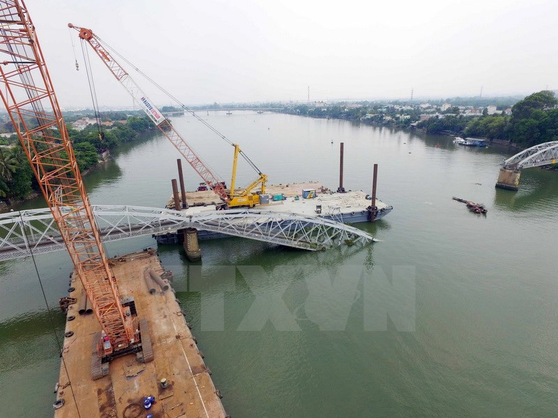 Tổ trục vớt đã sử dụng thiết bị gió đá cắt phần nhịp cầu bị sà lan húc đổ treo trên không. Hai cần cẩu siêu trọng đã được cố định tại vị trí cầu để khi các nhịp được cắt rời, cẩu sẽ nâng và đưa lên sà lan.