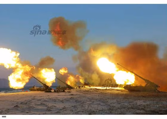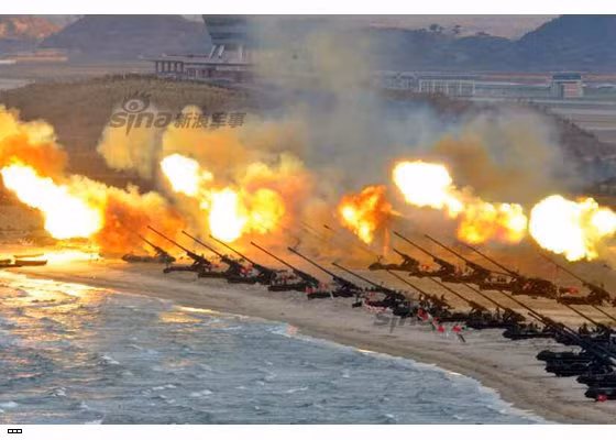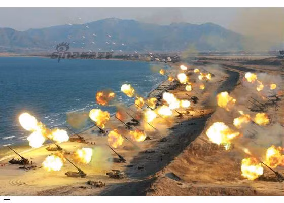 Sau đó là cuộc diễn tập phòng thủ chống đổ bộ đường biển. Nhà lãnh đạo tối cao Bắc Triều Tiên đánh giá chất lượng chiến đấu của lực lượng pháo binh. Các khẩu đội pháo hoạt động nhịp nhàng, thuần thục và pháo kích chính xác. Ông hài lòng nói: những tổ hợp pháo binh với những pháo thủ được huấn luyện kỹ càng, thuần thục và có tinh thần chiến đấu cao, sẵn sàng tiêu diệt kẻ thù. Với lực lượng pháo binh dũng mãnh này, không có lực lượng nào có thể đổ bộ được lên bờ biển Triều Tiên.