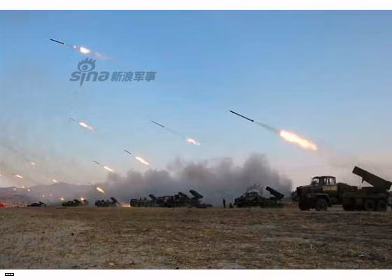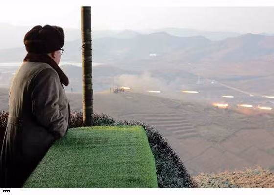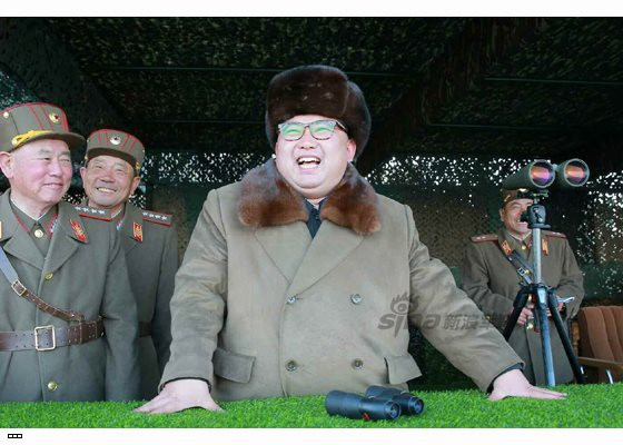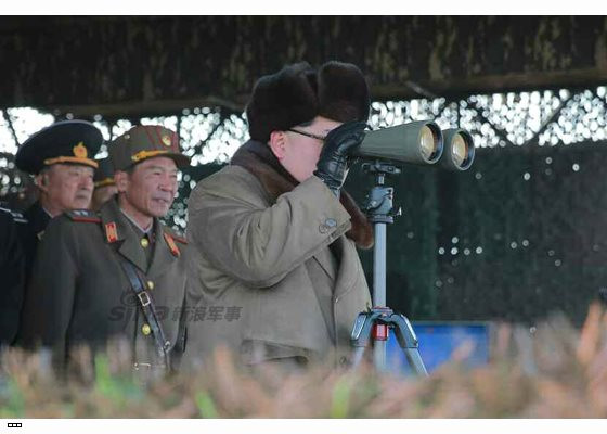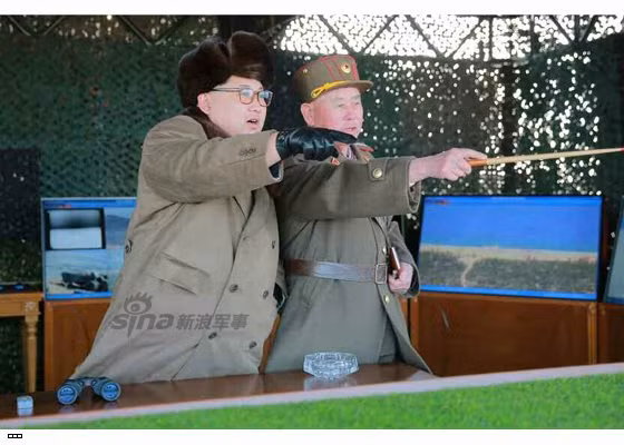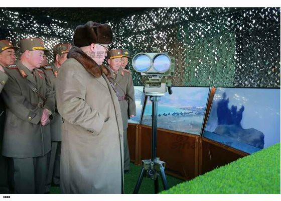 "Nhà lãnh đạo tối cao nước CHDCND Triều Tiên Kim Jong-un trên đài chỉ huy, quan sát và điều hành tác chiến nghe báo cáo về trạng thái sẵn sàng diễn tập của Tổng tham mưu trưởng lực lượng Quân đội Nhân dân Triều Tiên và ra lệnh bắt đầu cuộc diễn tập.