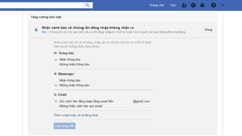 Bạn cũng có thể đăng ký nhận thông báo về đăng nhập không nhận ra, bằng cách vào Cài đặt Bảo mật và Đăng nhập. Sau khi đăng ký, Facebook sẽ gửi cảnh báo nếu có ai đó đăng nhập từ một thiết bị hoặc trình duyệt bạn không thường sử dụng và sẽ hướng dẫn bạn các bước để bảo mật tài khoản của bạn.