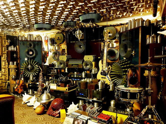 Để biết được âm thanh chuẩn xác nhất, ông Xuân mua từng nhạc cụ về và chơi thử, mục đích là để tham chiếu, từ đó setup sao cho âm thanh giống với thực tế nhất. Trong phòng này, có đầy đủ kèn, trống, chiêng... từ nhạc cụ dân tộc đến nhạc cụ hiện đại. Ngoài ra, ông cũng tham chiếu âm thanh qua bộ tai nghe Audeze LCD-2.