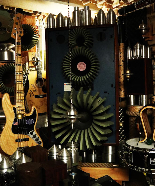Tuy nhiên, chủ nhân của căn phòng không nhấn mạnh vào bộ dàn máy, bởi theo ông, setup mới là thao tác quan trọng và nó đã làm ông tốn hơn 10 năm mày mò tìm hiểu. Những "quả đạn" này, hay những quả chuông, vật trang trí nhỏ cũng do ông tự chế ra nhằm chống rung, chống nhiễu âm thanh. "Tôi chủ yếu mua thiết bị âm thanh, còn dây dẫn đều mua ở các hàng ve chai, sau đó về tái sử dụng, nhờ đó mà tiết kiệm được một khoản để đầu tư vào các vật dụng khác", ông Xuân nói.