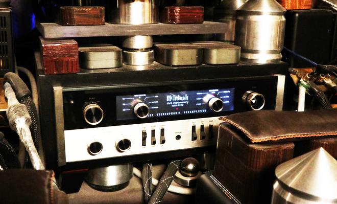 Setup căn phòng gồm loa JBL Studio 4343A, ampli Mcintosh - gồm 2 module MC75 "đánh" dãy trên và 2 module MC 275 "đánh" dãy dưới, pre-ampli C22, cơ Wadia 7, DAC AMR của Anh. Tất cả đều là phiên bản giới hạn, với tổng giá trị khoảng 40.000 USD. Tuy nhiên, các vật dụng phụ cũng chiếm tới hơn 40.000 USD, nâng tổng giá trị phòng âm thanh này lên hơn 80.000 USD.