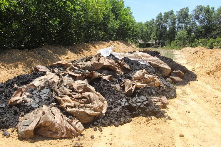 Cận cảnh loại chất thải trong Formosa bị chôn lấp ở trang trại tại thị xã Kỳ Anh.