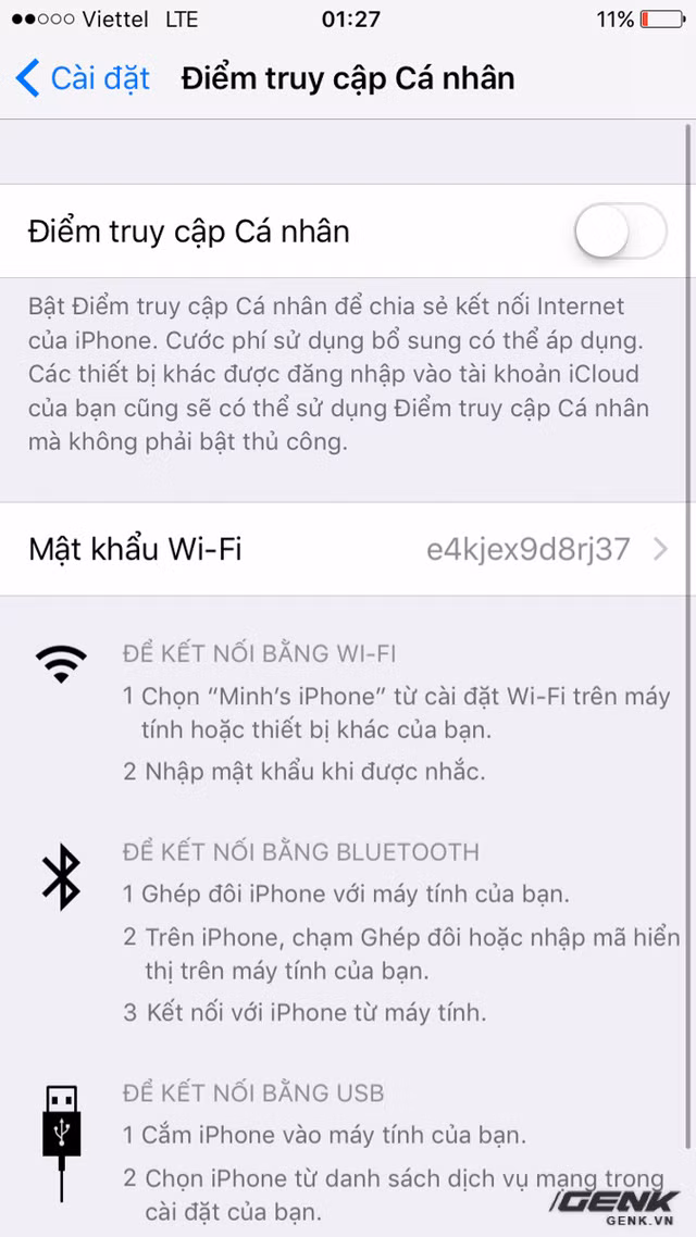 Khả năng phát Wi-Fi từ mạng di động cũng được kích hoạt
