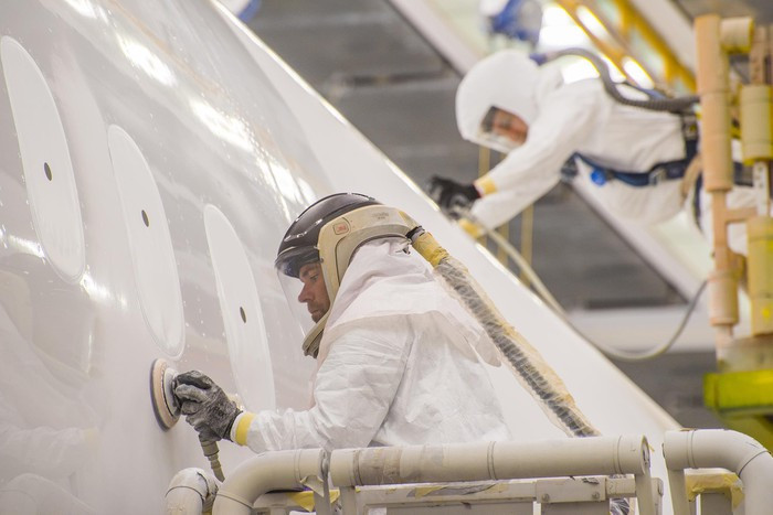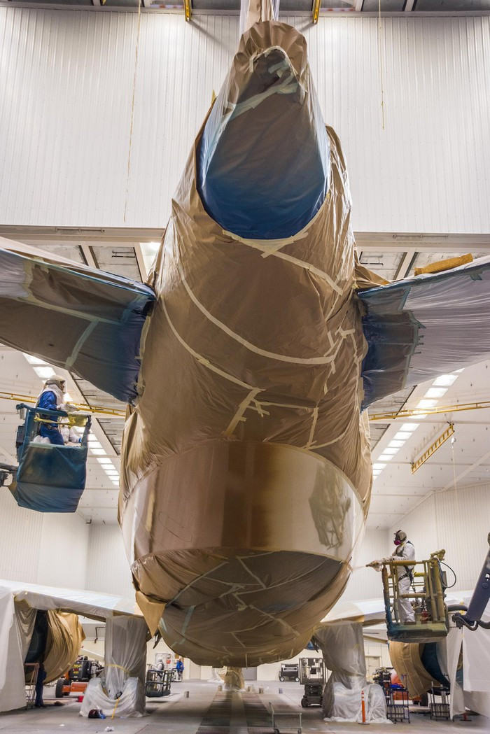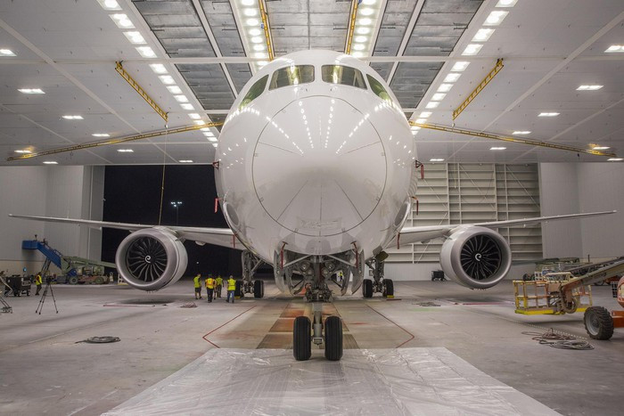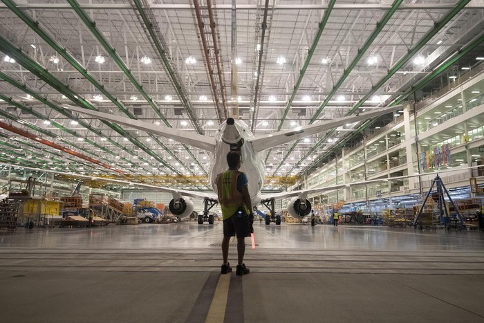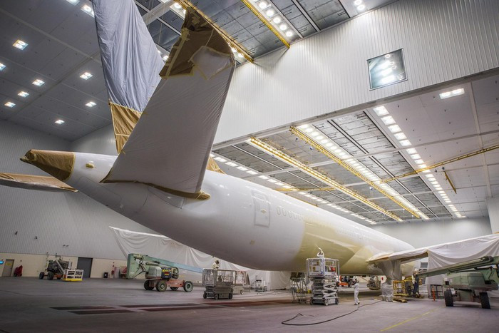 Chiếc máy bay Boeing 787-10 tại nhà máy Boeing (Mỹ) trước khi sơn. Dòng máy bay này được Boeing hoàn tất thiết kế chi tiết vào ngày 2/12/2015. Tới tháng 3/2016, những chiếc máy bay đầu tiên được đưa vào sản xuất và lắp ráp.