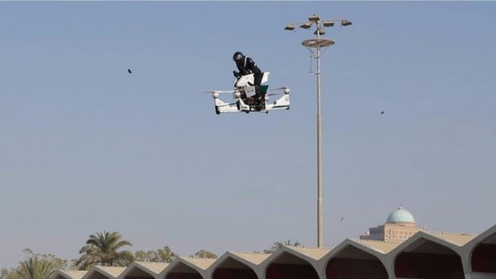 Cảnh sát Dubai luyện tập xe bay Mẫu xe bay kết hợp giữa thiết kế máy bay không người lái và xe máy 4 bánh đang được cảnh sát Dubai triển khai luyện tập.