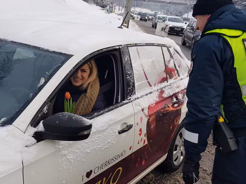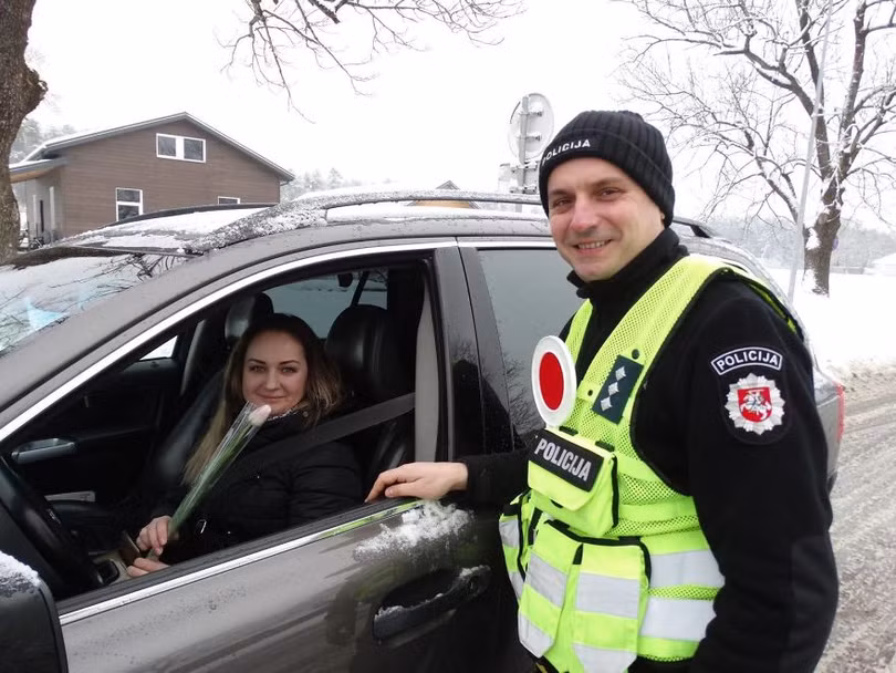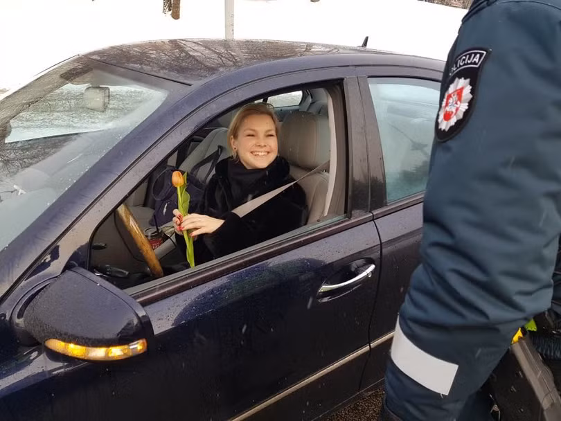 VietTimes -- Khi bạn điều khiển phương tiện giao thông và bỗng nhiên gặp tín hiệu từ chiến sĩ cảnh sát, điều này thật không vui chút nào. Nhưng tại đất nước Litva, những người phụ nữ thay vì nhận được vé phạt, họ rất hạnh phúc khi nhận được những bông hoa cùng lời chúc ngọt ngào trong ngày Quốc tế phụ nữ 8/3 từ chiến sĩ cảnh sát giao thông.
