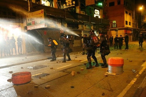 Cảnh sát phải nổ súng cảnh báo. Ảnh: SCMP