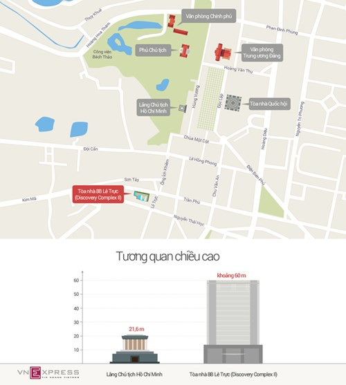 Sơ đồ vị trí công trình 8B Lê Trực. Nguồn đồ họa VnExpress