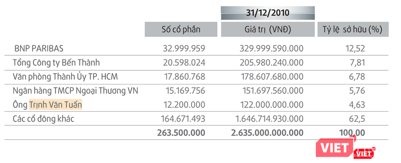 Tài liệu mà VietTimes thu thập được xác nhận, cuối năm 2010, cá nhân ông Trịnh Văn Tuấn đã trực tiếp đứng tên sở hữu 12,2 triệu cổ phần OCB, tương ứng với 4,63% vốn điều lệ. Chưa kể người có liên quan và người ẩn danh.
