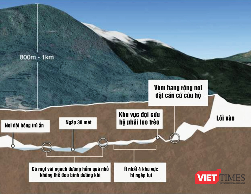 Đây là địa đồ hệ thống phức hợp hang động Tham Luang Nang Nom, nơi các thành viên đội bóng được tìm thấy và hoạt động cứu hộ đang diễn ra khẩn trương. 6 cậu bé đã được cứu ra ngoài và vẫn còn 7 người còn kẹt lại trong hang