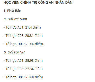 Học viện Chính trị Công an Nhân dân vừa công bố điểm chuẩn trúng tuyển năm 2020.