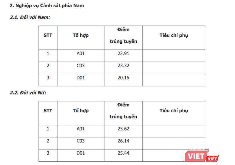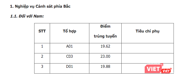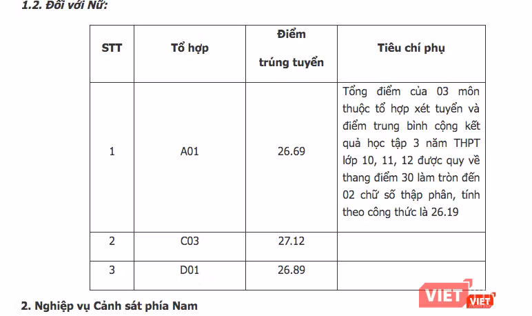 Điểm chuẩn trúng tuyển vào Học viện Cảnh sát nhân dân: