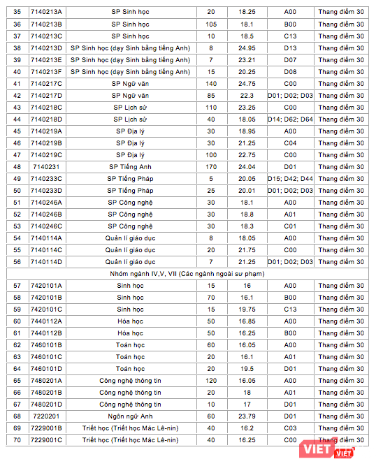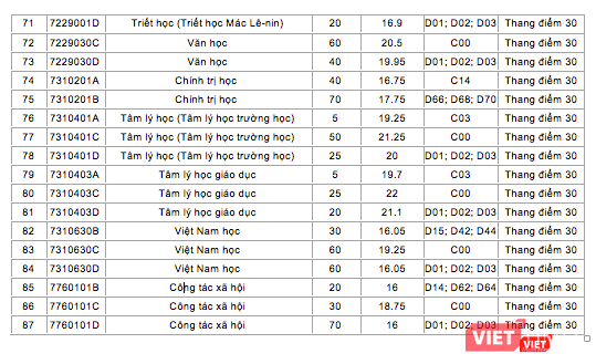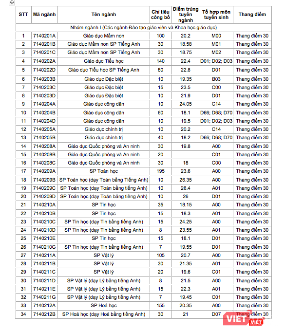 Điểm chuẩn xét tuyển vào các ngành của Trường ĐH Sư phạm Hà Nội: