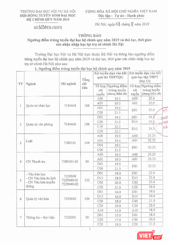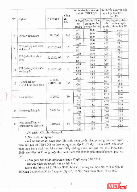 Điểm chuẩn vào Trường ĐH Nội vụ Hà Nội