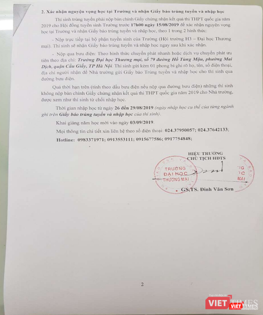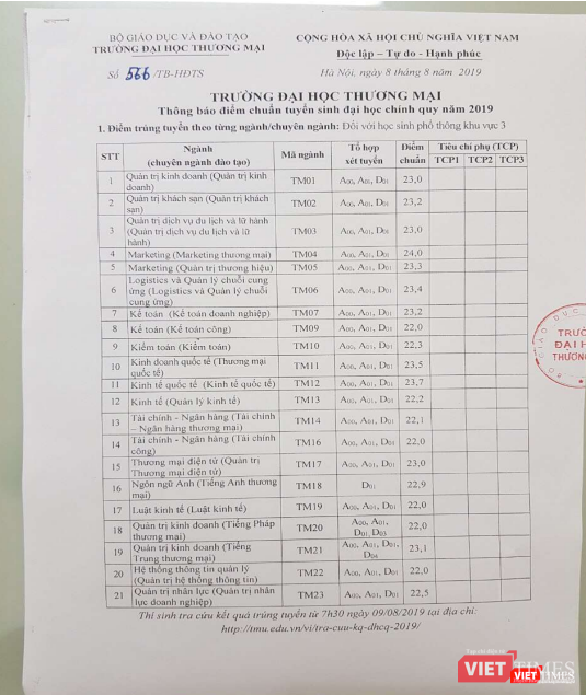 Điểm chuẩn trúng tuyển vào ĐH Thương mại: