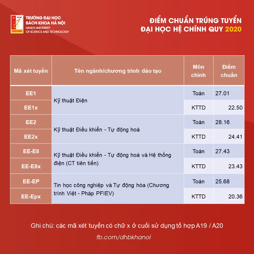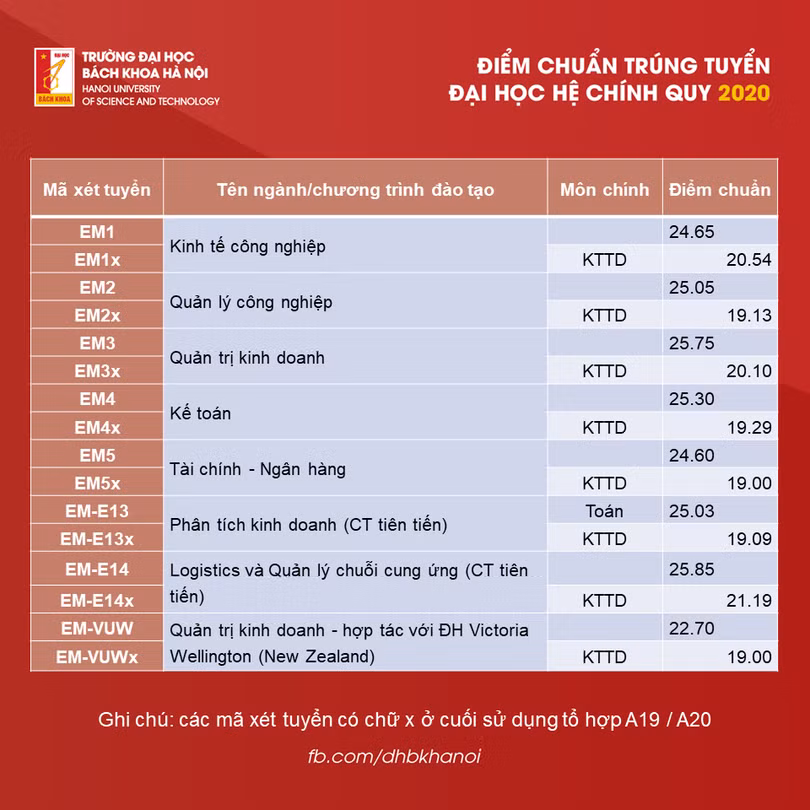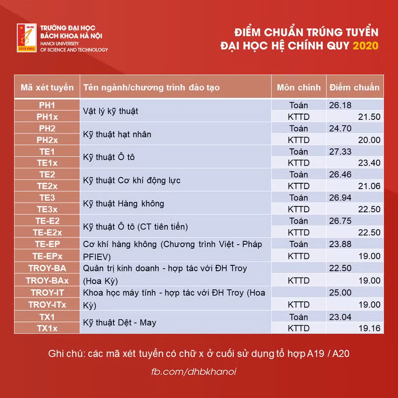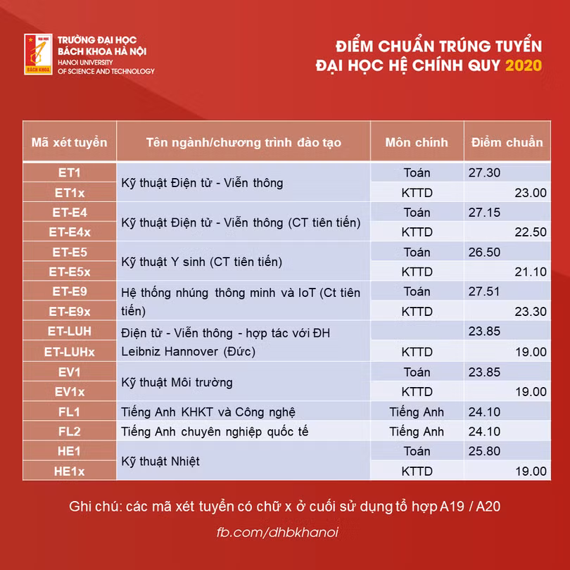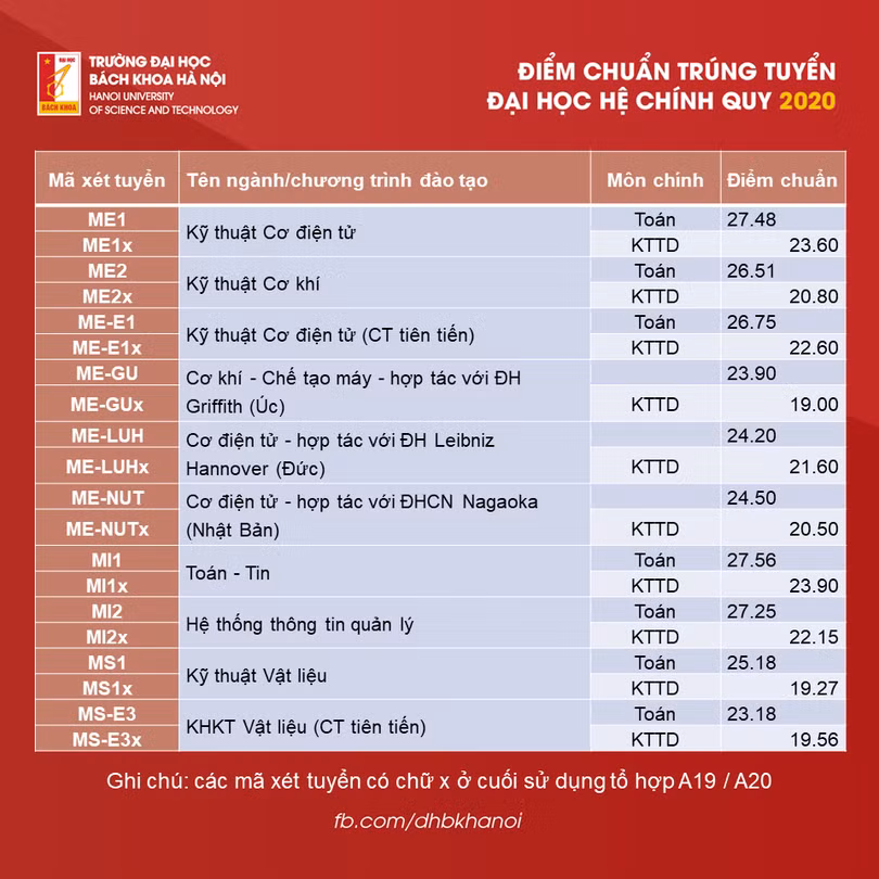 Cập nhật điểm chuẩn Đại học Bách khoa Hà Nội năm 2020: