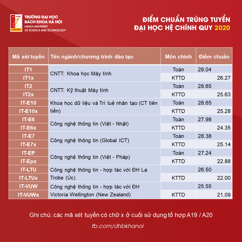 Điểm chuẩn trường Đại học Bách khoa Hà Nội năm 2020 được VietTimes cập nhật nhanh chóng, chính xác nhất ở dưới đây. Bạn đọc chú ý theo dõi, quay lại bài viết này thường xuyên để xem các cập nhật tiếp theo về điểm chuẩn trường Đại học Bách khoa Hà Nội năm 2020.
