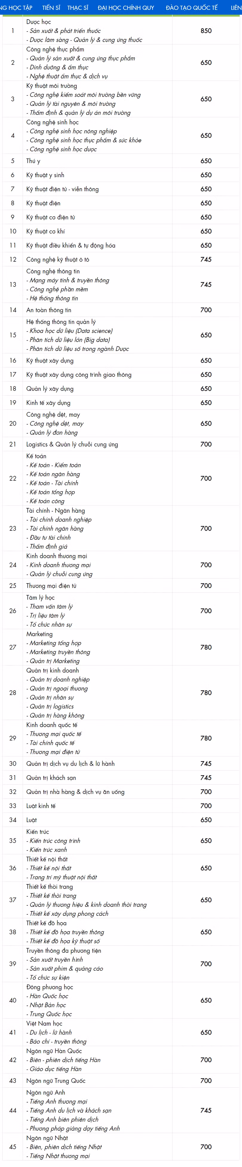 Điểm trúng tuyển học bạ đợt nhận hồ sơ đến 15/9 của từng ngành tại Đại học Công nghệ TP.HCM cụ thể như sau: