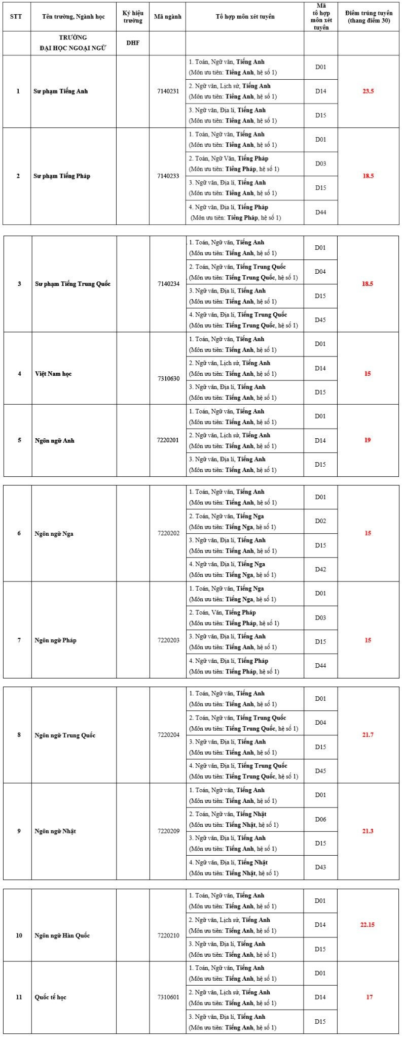 Cập nhật điểm chuẩn Đại học Ngoại ngữ - Đại học Huế 2020:
