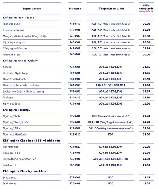 Chiều ngày 4/10, trường Đại học Thăng Long đã công bố điểm chuẩn tuyển sinh hệ Đại học chính quy với 3.400 chỉ tiêu ở 24 ngành. Dưới đây là điểm chuẩn chi tiết của trường Đại học Thăng Long: